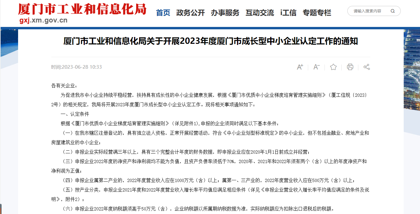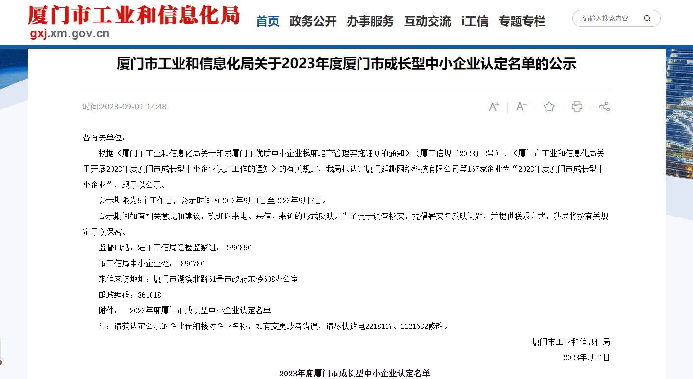 近日,豪天迎來了一則喜訊:廈門市工業(yè)和信息化局發(fā)布了《關于2023年度廈門市成長型中小企業(yè)認定名單的公示》,廈門豪天科技有限公司被權威認定為“廈門市成長型中小企業(yè)”。