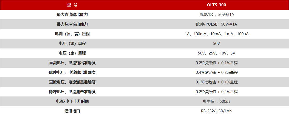 OLTS-300 OLED 測(cè)試電源,針對(duì)OLED的小電流特性而開(kāi)發(fā),電流分辨力最高可達(dá)0.1μA,用于OLED瞬態(tài)和穩(wěn)態(tài)測(cè)試。該電源內(nèi)置程控恒壓恒流電源,集脈沖(PULSE)測(cè)試、直流(DC)測(cè)試、精密測(cè)量與數(shù)字顯示于一體,是OLED測(cè)試的理想電源。