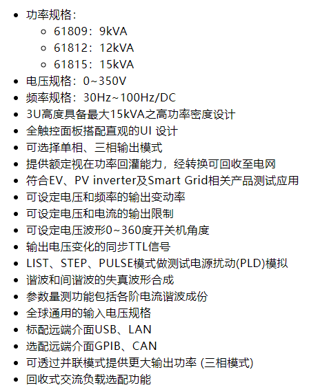 回收式電網(wǎng)模擬電源Model 61809/61812/61815