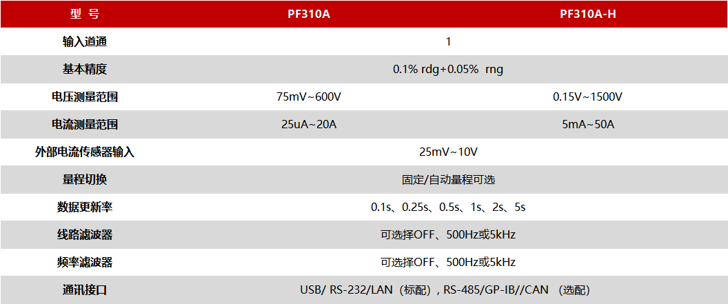 PF310A系列是一款寬頻率、高精度的多功能數(shù)字功率計(jì),可以實(shí)現(xiàn)DC和0.5Hz-100kHz寬頻測試,最小可測25μA電流,非常適合待機(jī)功耗的測量。
