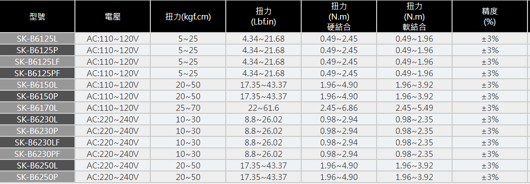 SK-B6L系列 無碳刷AC交流電壓全自動大扭力手按式電動起子系列