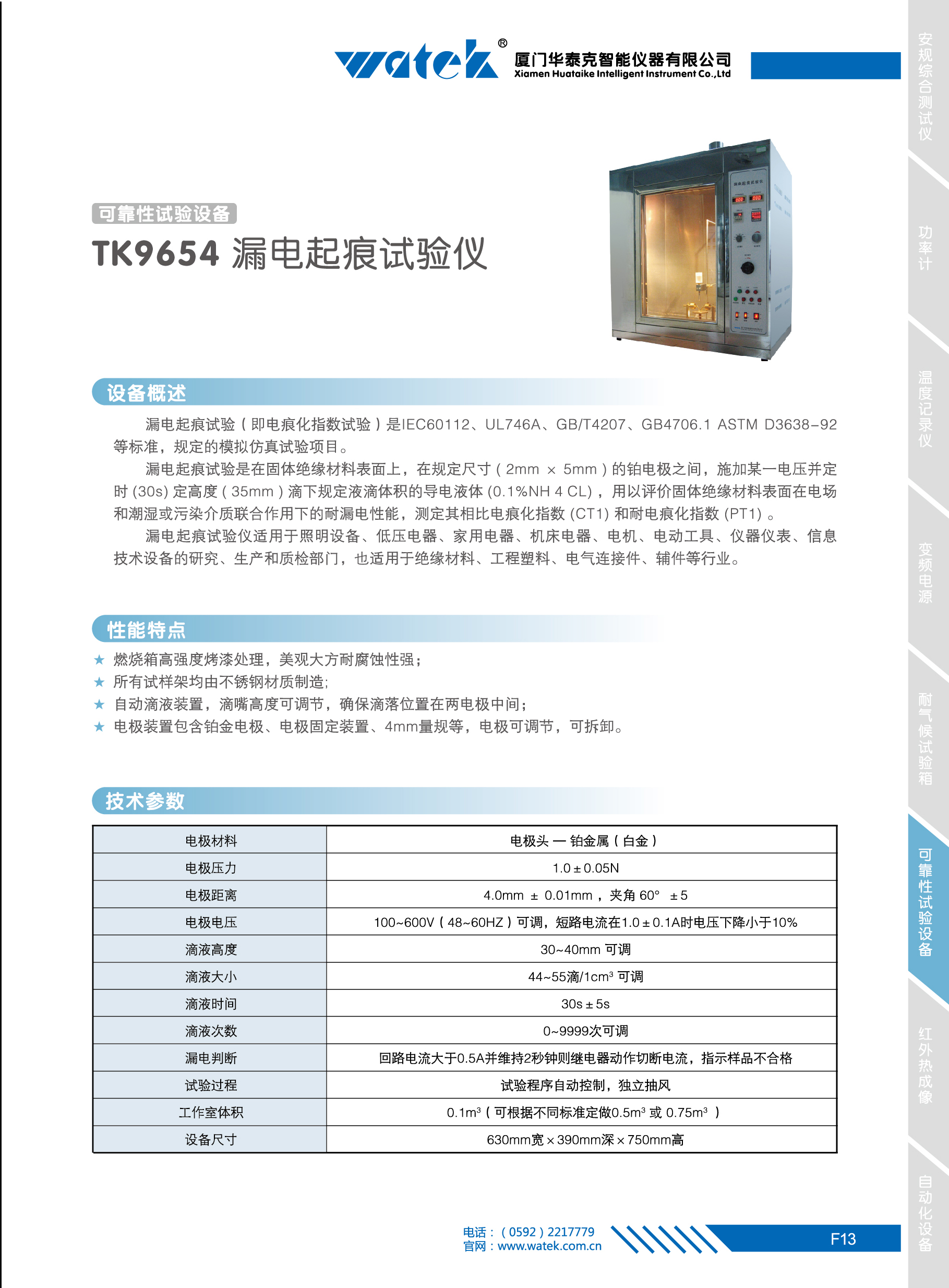 漏電起痕試驗(即電痕化指數(shù)試驗)是IEC60112、UL746A、GB/T4207、GB4706.1 ASTM D3638-92等標(biāo)準(zhǔn),規(guī)定的模擬仿真試驗項目。