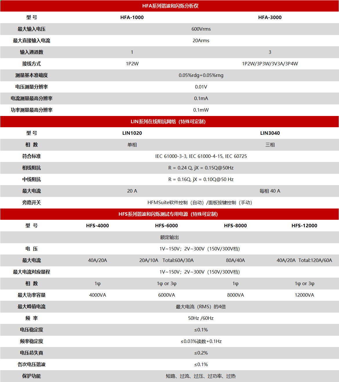 HFM3000諧波和閃爍測試系統(tǒng)是一套認證級諧波和閃爍全兼容的測試系統(tǒng),包含HFA系列諧波和閃爍分析儀、HFS系列諧波和閃爍測試專用電源及HFMSuite專用分析軟件,符合最新版IEC 61000-3-2、IEC 61000-3-3、IEC61000-3-11、IEC61000-3-12和GB 17625.1、GB 17625.2、GB/T 17625.8. GB/T 17625.7標準,同時滿足最新版IEC 61000-4-7中I級儀器準確度要求和IEC 61000-4-15標準對測量儀器的要求,實現(xiàn)對被測設(shè)備諧波和閃爍全兼容測試及分析并生成詳細的測試報告。