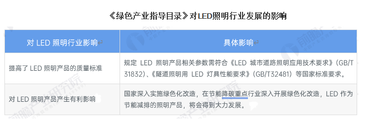 《綠色產業(yè)指導目錄》意在加強生態(tài)文明建設、推進綠色發(fā)展,發(fā)展綠色產業(yè)。《綠色產業(yè)指導目錄》既是推進生態(tài)文明建設、打贏污染防治攻堅戰(zhàn)的有力支撐,也是培育綠色發(fā)展新動能、實現(xiàn)高質量發(fā)展的重要內容?!毒G色產業(yè)指導目錄》對LED照明行業(yè)發(fā)展的影響如下所示: