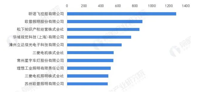 截止2023年3月全球LED照明行業(yè)專利申請數(shù)量TOP10